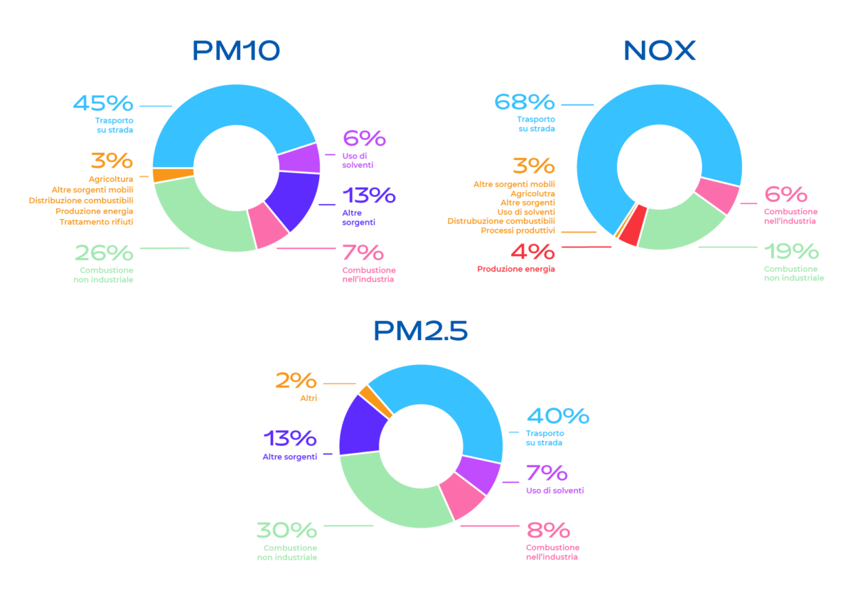 Complessivamente, nelle aree urbanizzate la porzione di inquinamento dell’aria più rilevante deriva quasi sempre dal traffico.
