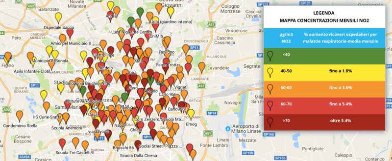 Effettuato dai cittadini dall’11 febbraio all’11 marzo 2017 a Milano, in altri comuni dell’area metropolitana (Paderno Dugnano, Gallarate, Novedrate, Desio, Caponago, Carugate, Cernusco sul Naviglio, San Donato Milanese, Pregnana, San Giuliano Milanese) e a Monza, il campionamento è stato fatto posizionando 219 campionatori passivi davanti a casa, o a scuola, o al luogo di lavoro, su un palo ad un’altezza di 2,5/3 metri. In estrema sintesi, i dati rilevati evidenziano che l’area metropolitana di Milano non dà, ai suoi abitanti, scampo dall’esposizione al biossido di azoto.